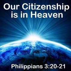 Philippians 3:20-21 “But our citizenship is in heaven. And we eagerly await a Savior from there, the LORD JESUS CHRIST WHO, by the power that enables HIM to bring everything under HIS control, will transform our lowly bodies so that they will be like HIS glorious body!”