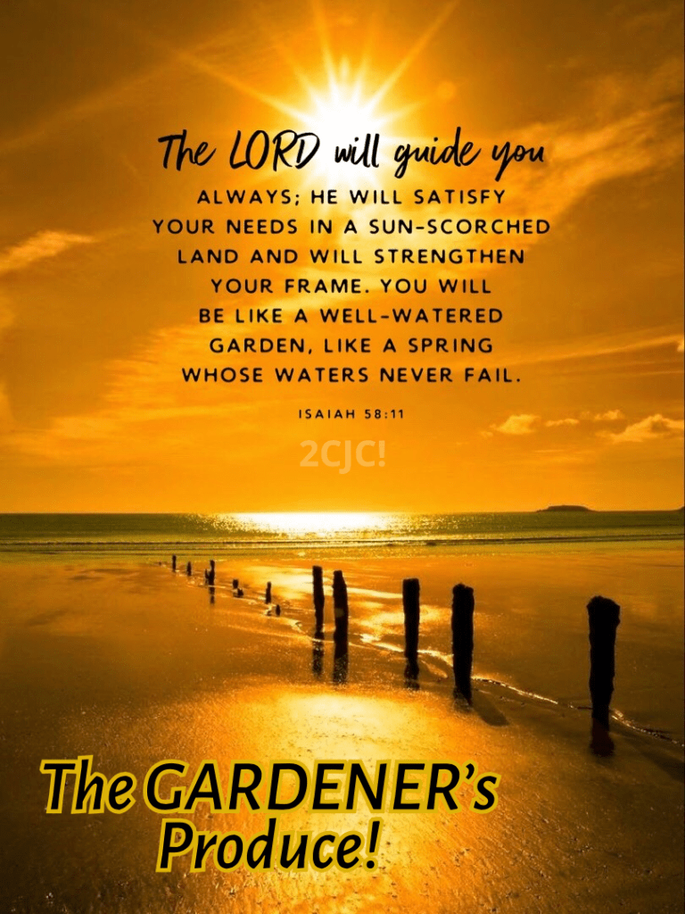 So being filled with Heaven’s wine and HIS vegetables will produce a harvest here to feed others. Yes!
