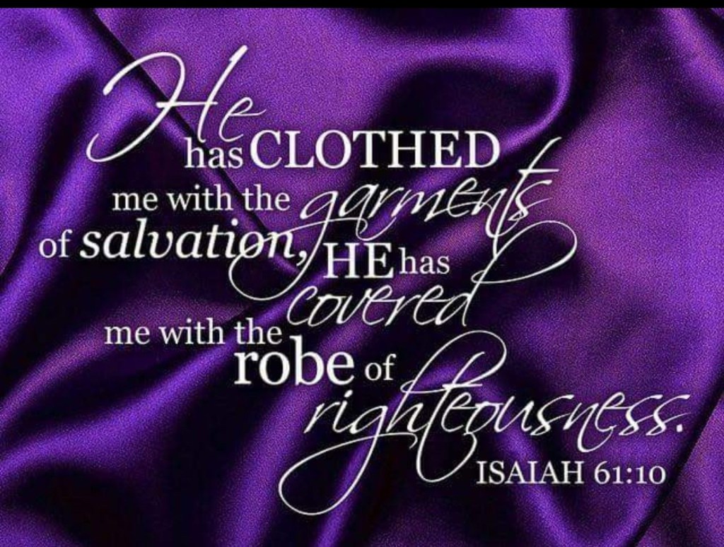 Isaiah 61:10a “I delight greatly in the LORD; my soul rejoices in my GOD. For HE has clothed me with garments of salvation and arrayed me in a robe of HIS righteousness…”