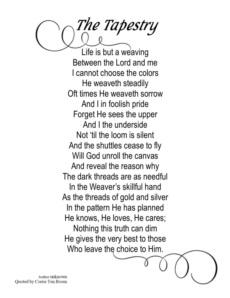 So serve HIM, reach out to the threads around you daily and watch Heaven’s fabric grow!